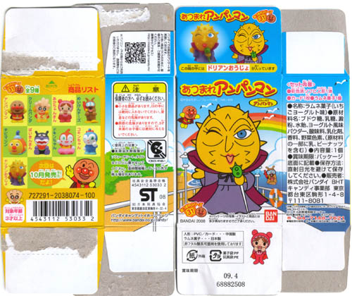 ドキンちゃんが浮き輪をつけていて、2006年夏に発売された第23弾のばいきんまんとペアにできます。